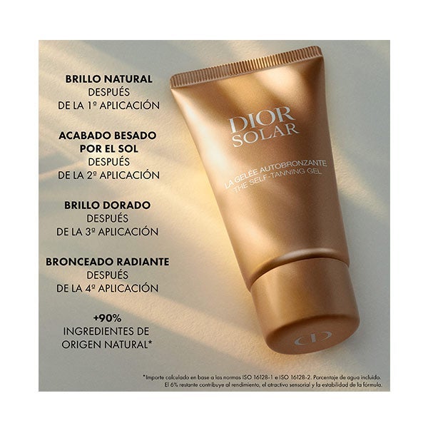 Según el resultado buscado, desde un tono suave y natural hasta un bronceado más luminoso, aplique Dior Solar Gel Autobronceador variando el número de capas seguidas del producto.