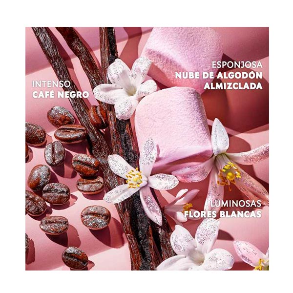 BLACK OPIUM GLITTER de Yves Saint Laurent reinventa el clásico acorde de café floral con una energía más luminosa y vibrante, que acentúa una sensualidad envolvente y magnética. Esta reinterpretación del emblemático café floral irradia un matiz más brillante para revelar una seducción irresistible.