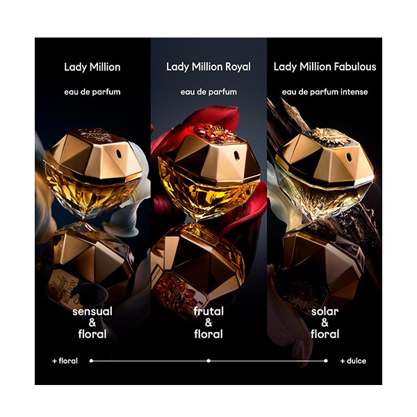 Inspirada en la fuerza de tu confianza interior, adéntrate en el universo de Lady Million Royal y descubre una esencia que celebra la feminidad decidida, creada especialmente para ti por Paco Rabanne.