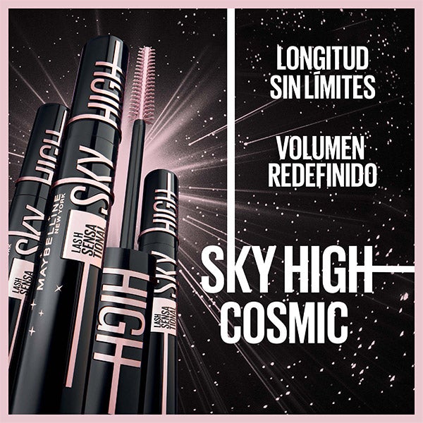 La máscara de pestañas Lash Sensational Sky High Cosmic ofrece una extensión sin límites y un volumen que transforma tus pestañas al instante.