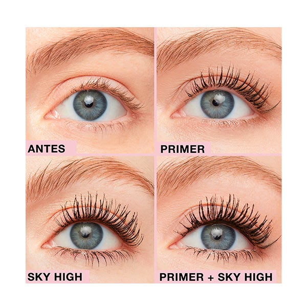 Puedes aplicarlo solo para un efecto natural mientras refuerzas tus pestañas, o combinarlo con la máscara Sky High para conseguir una extensión y densidad máximas.