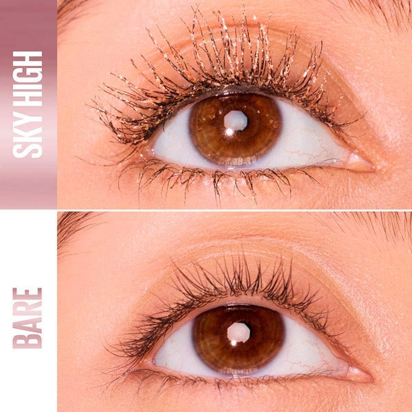 La máscara de pestañas Lash Sensational Sky High de Maybelline proporciona volumen y longitud modulables, logrando que las pestañas se eleven más con cada pasada. Su fórmula, ligera e infusionada con extracto de bambú, deja una sensación liviana, casi como si las pestañas flotaran.