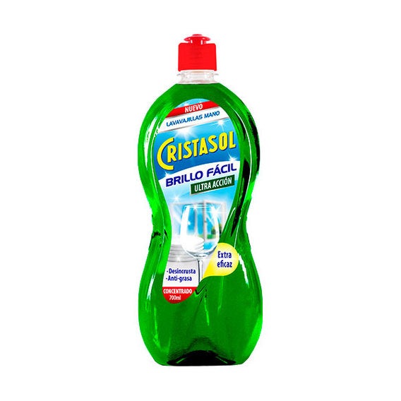 El nuevo Cristasol Brillo Fácil Ultra Acción con su fórmula concentrada ofrece un mayor rendimiento en la limpieza de tu vajilla con la máxima eficacia. Gracias a su poder desengrasante, elimina y desincrusta hasta la grasa más difícil en platos, ollas, sartenes y bandejas dejándolas con un acabado súper brillo impecable y un suave aroma a manzana verde.