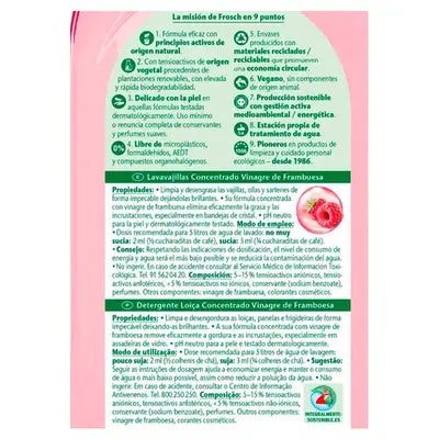Lavavajillas en gel concentrado eficaz contra la grasa con vinagre de frambuesa. Su fórmula de vinagre de frambuesa limpia poderosamente y deja la vajilla brillante. pH neutro y dermatológicamente testado. Fórmula eficaz poder natural con principios activos naturales para acentuar las propiedades de limpieza y cuidado. Fórmulas testadas dermatológicamente que son delicadas con la piel. Libre de productos químicos nocivos. No testado en animales.