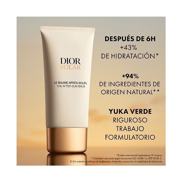 Experimente la suavidad de Dior Solar Bálsamo After-sun, un cuidado refrescante e hidratante que proporciona alivio inmediato tras la exposición al sol.