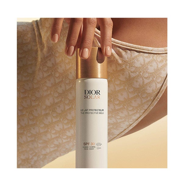 Con Dior Solar Leche Protectora para Rostro y Cuerpo SPF 30, el bronceado se revela más uniforme y con un aspecto naturalmente embellecido.