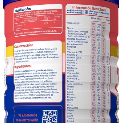 Fórmula láctea de desarrollo pensada desde el primer año de vida.