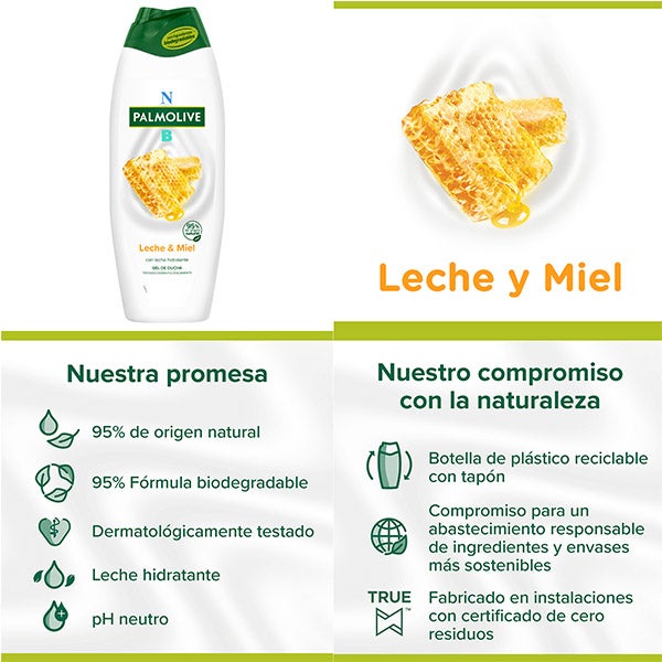 Gel de ducha o baño Palmolive NB Leche y Miel, hidratante 550ml Siéntete fresco todo el día mientras mantienes tu piel saludable con el desodorante Sanex Men Zero% Respect & Control. Ha sido formulado con una innovadora tecnología de vanguardia que trabaja en sincronía con el cuerpo para una protección eficaz contra los olores durante 24 horas. Su triple acción inhibe la formación de olores corporales con ingredientes antibacterianos suaves, ralentiza la liberación de olores corporales, atrapa y minimiza el olor residual con su tecnología patentada. Esta nueva fórmula de Sanex Men Zero% Respect & Control contiene menos ingredientes químicos, 0% de Sales de Aluminio y 0% de Alcohol Etílico. Respeta tu piel y olvídate de los olores durante 24 horas. Principales beneficios: Contiene leche hidratante y extracto de miel de 95% origen natural. Agua y abastecimiento natural de ingredientes con un procesamiento mínimo. Ayuda a hidratar tu piel dejándola suave y sedosa 95% fórmula biodegradable Botella Reciclable con tapón puesto Testado dermatológicamente