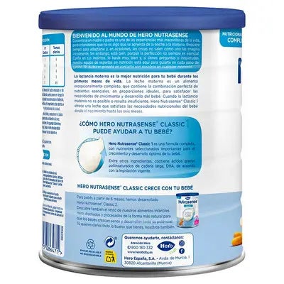 - Fórmula nutritiva: La Leche Nutrasense Classic de Hero proporciona una combinación equilibrada de nutrientes esenciales para el crecimiento y desarrollo.