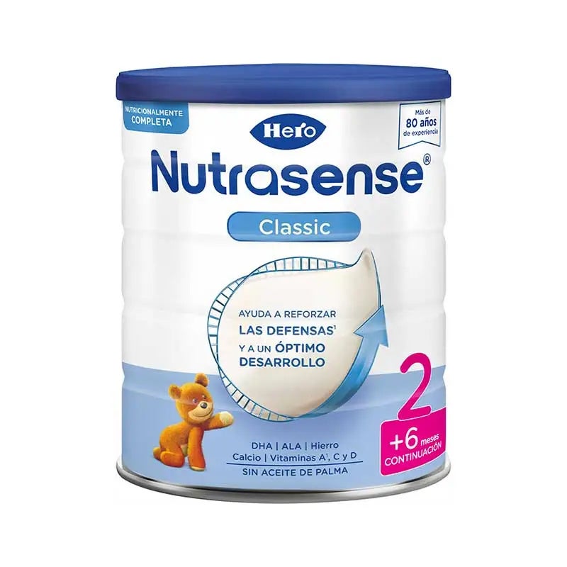 Hero Nutrasense Classic 2, leche de continuación en polvo 800g fórmula completa con nutrientes seleccionados importantes para el crecimiento y desarrollo óptimo de los bebés desde los 6 meses.