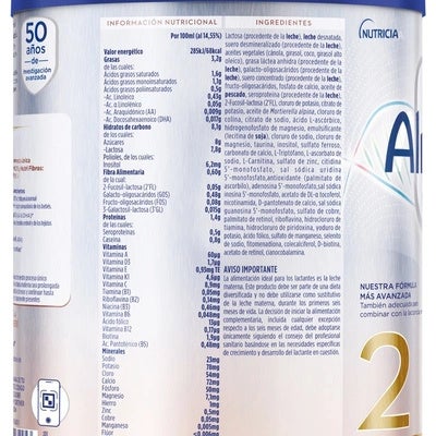 - Composición avanzada: Contiene una mezcla única de HMO (2´-FL) y Nutri Fibras (HMO 3´GL y GOS/FOS), que imitan la estructura de los oligosacáridos presentes en la leche materna.
