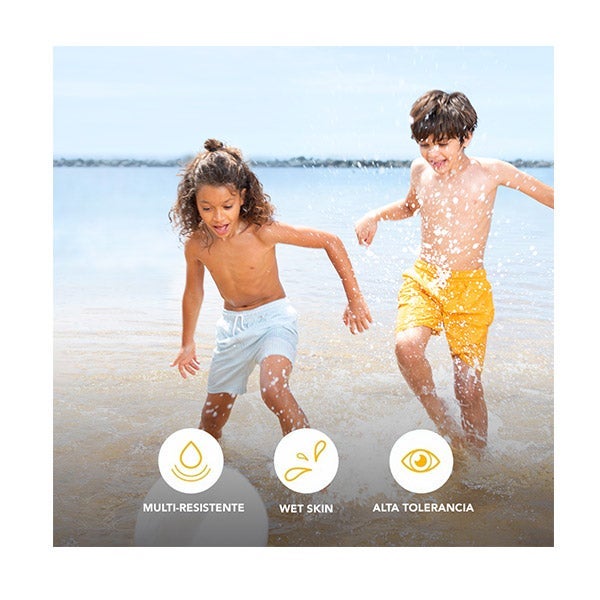 Leche solar infantil: fórmula de alta protección desarrollada especialmente para niños y avalada por pediatras.