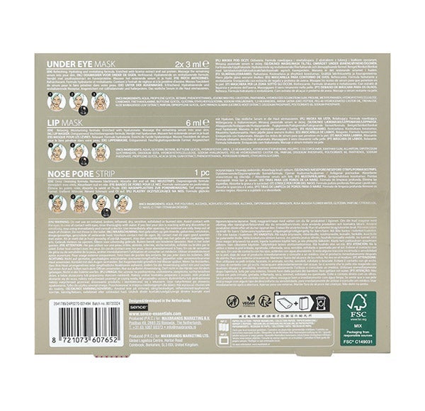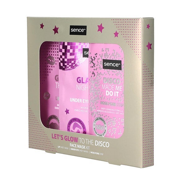 Disfruta de cada fiesta con la confianza de una piel luminosa. El kit de mascarillas Sence Disco Glam reúne los básicos indispensables para mantener tu cutis resplandeciente durante toda la noche.