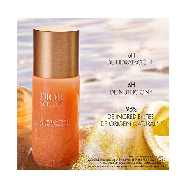 Con propiedades hidratantes, Dior Solar Aceite Sublimador nutre la piel mientras deja una fragancia placentera. Al aplicarse, potencia progresivamente el tono bronceado y deja la piel más radiante.