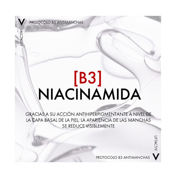 Niacinamida B3 ayuda a disminuir de forma visible la apariencia de las manchas oscuras.
