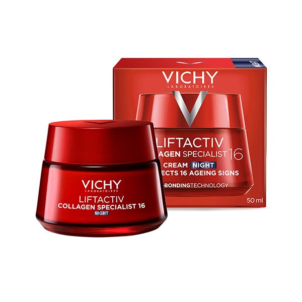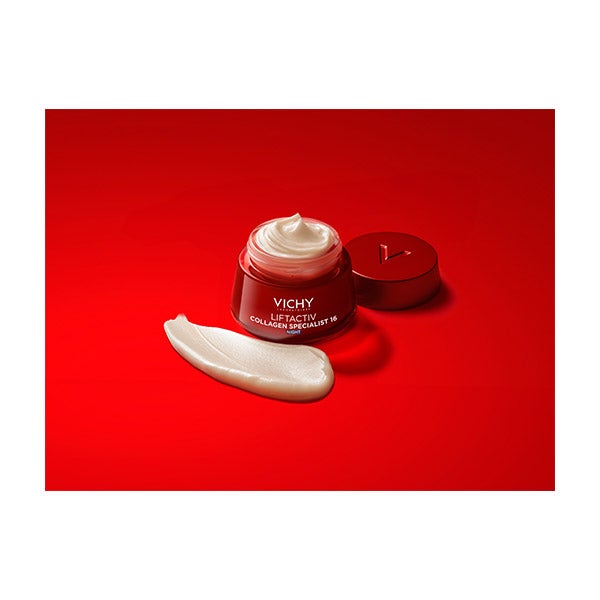 Revitaliza la piel fatigada con VICHY LiftActiv Collagen Noche, formulado con una avanzada combinación de activos que ofrecen un notable efecto antiedad.