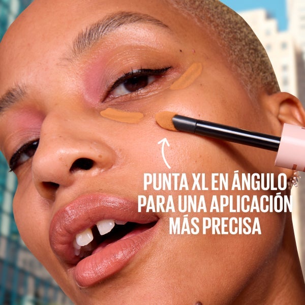Aplica el producto con el aplicador XL y aprovecha su punta en ángulo para cubrir toda el área deseada o para trabajar con precisión en ojeras, pliegues y comisuras internas.