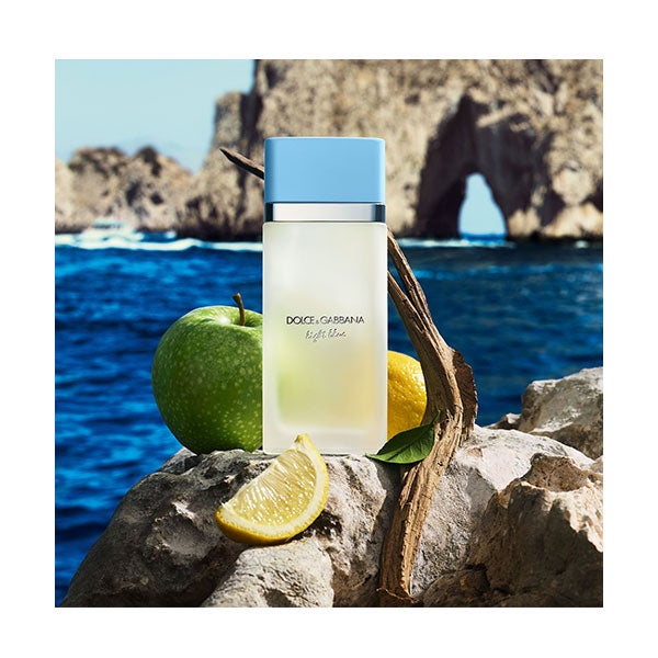 La sensación de una piel bañada por el sol, envuelta en la brisa mediterránea y perfumada con notas florales y frutales de exuberante vegetación: así es Dolce&Gabbana Light Blue, una esencia fresca y seductora que refleja la libertad y el encanto de un día frente al mar, con las olas deslizándose suavemente contra los acantilados de Capri.