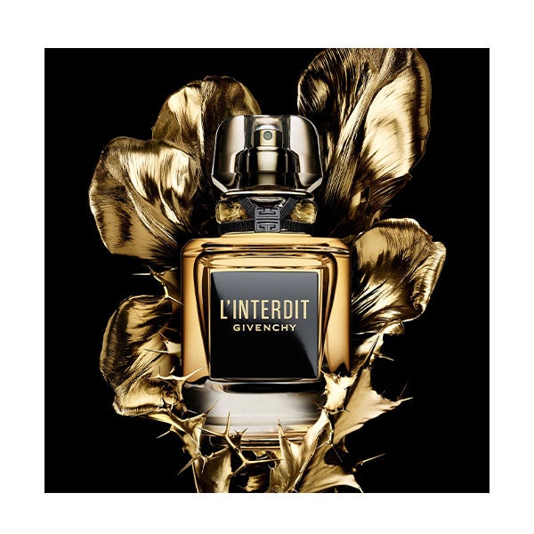 L'Interdit renueva su emblemático frasco, combinando el negro intenso con destellos dorados y brillos de luz. Más que un envase, L'Interdit Parfum es una pieza deseable y sofisticada.