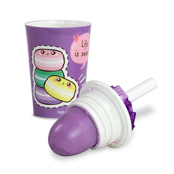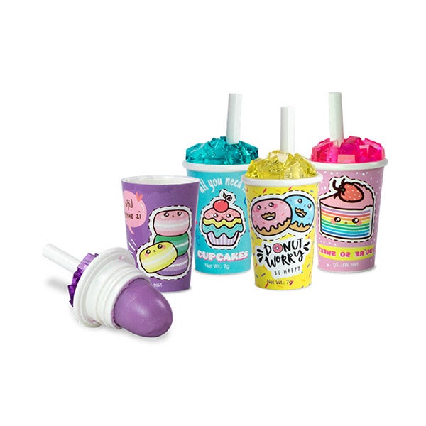 Bálsamo para labios presentado en un divertido envase que imita una lata de refresco.