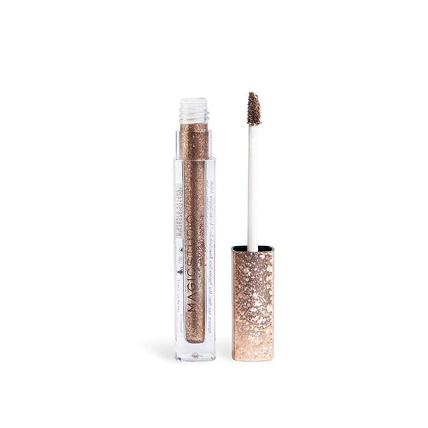Es una sombra de ojos líquida con un efecto glitter. Su aplicador es suave, la textura resulta cremosa y ofrece un acabado espectacular gracias a los pigmentos que capturan y proyectan la luz.