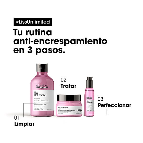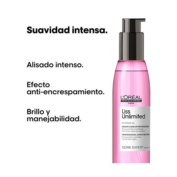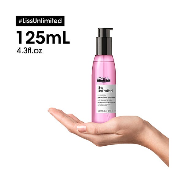 El aceite potenciador de brillo Liss Unlimited integra agentes alisadores que crean una barrera antihumedad y mantienen el encrespamiento bajo control por más tiempo. Su textura ligera, de base acuosa, envuelve el cabello para sellarlo, aportando una luminosidad intensa y una suavidad manejable.
