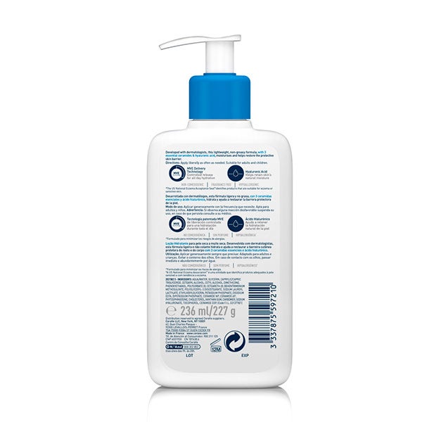 La Loción Hidratante de CeraVe ofrece una hidratación profunda a la vez que favorece la recuperación de la barrera protectora natural de la piel.