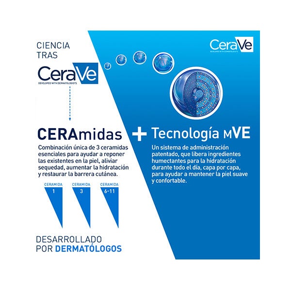 Su textura ligera y libre de grasa, enriquecida con 3 ceramidas esenciales y ácido hialurónico, brinda una hidratación prolongada durante todo el día tras una sola aplicación.