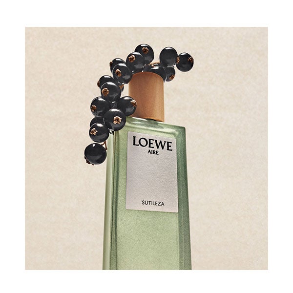 Los perfumes femeninos de la familia LOEWE Aire se presentan en el característico estuche monocromático de la firma, ilustrado con la fotografía “Vaccinium corymbosum” de Karl Blossfeldt, que simboliza la ligereza y la sutileza de la línea. En su interior, el nuevo frasco en bloque ideado por el director creativo de LOEWE, Jonathan Anderson, luce un tono verde hoja irisado inspirado en los acordes cítricos de la composición.