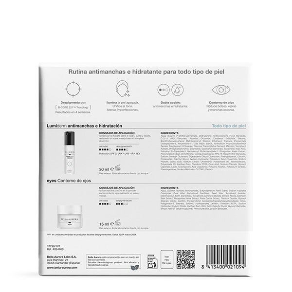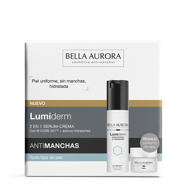 Este estuche incluye Lumiderm antimanchas e hidratación y Eyes