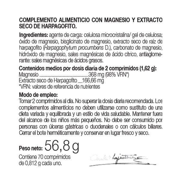 harpagofito (Harpagophytum procumbens D.), carbonato de magnesio,
