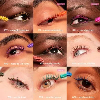 El amplio rango de colores de la máscara de pestañas The Color Mascara permite elegir el tono perfecto para cada ocasión, ya sea un look diario con los tonos marrones clásicos o un estilo más audaz con el naranja o el rosa. Cada aplicación garantiza una mirada intensa y definida, destacando tus ojos de manera espectacular sin esfuerzo.