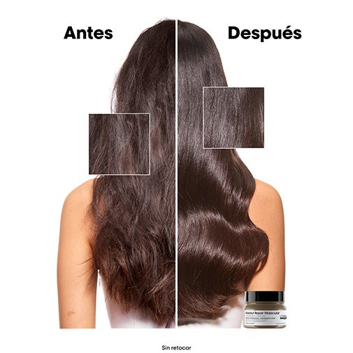 La mascarilla Absolut Repair Molecular ha sido creada para actuar en profundidad sobre el pelo dañado, sin importar su textura ni su estado, ya sea teñido, decolorado o natural. Gracias a su innovadora tecnología, penetra hasta el núcleo de la fibra capilar para reconstruir, reforzar y alisar intensamente la melena.