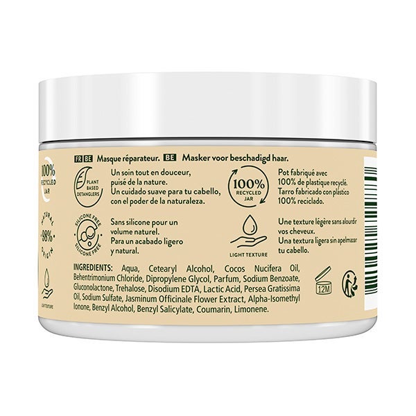 Esta mascarilla reparadora está pensada para restaurar el cabello dañado. Con aceite de aguacate, proporciona una nutrición intensa y contiene un 98 % de ingredientes de origen natural. Enriquecida con aceite de aguacate y flor de jazmín, ayuda a devolver la suavidad y el brillo.