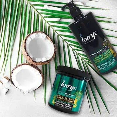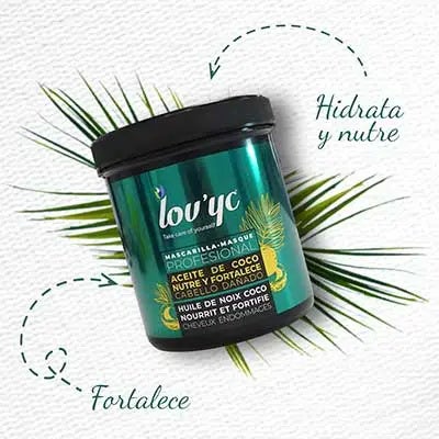 La mascarilla capilar LOV’YC NUTRE Y FORTALECE indicado para cabellos dañados, o frágiles con aceite de coco. Su fórmula rica en nutrientes penetra las fibras capilares y ayuda a fortalecer e hidratar en profundidad de la raíz hasta las puntas.