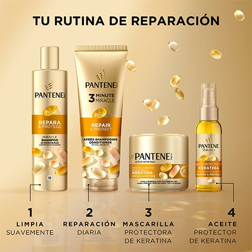 Para obtener mejores resultados, se recomienda combinarla con el champú y el acondicionador Pantene Repara y Protege.