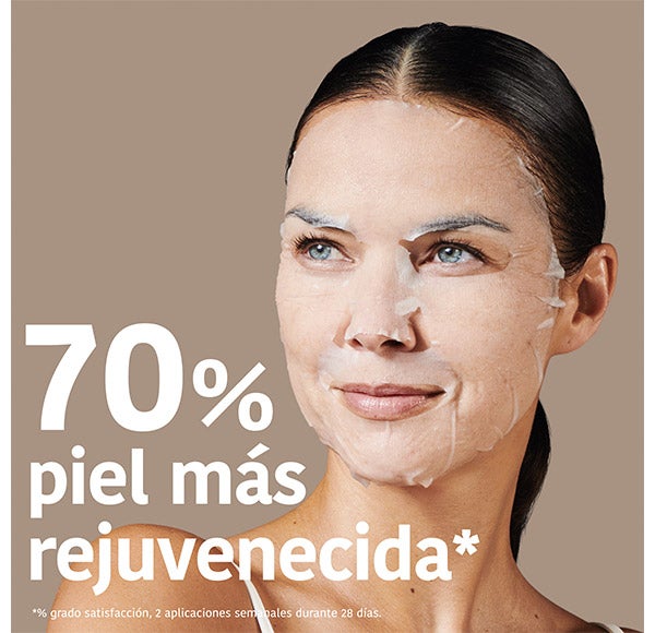 Abre cuidadosamente la mascarilla y ajústala sobre el rostro previamente limpio.