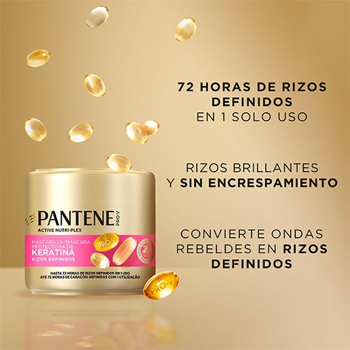 La mascarilla Pantene Pro-V Rizos Definidos es un tratamiento intenso que consigue rizos perfectamente moldeados. Proporciona la hidratación esencial que requiere el cabello rizado desde la primera aplicación y contribuye a reparar los signos visibles del daño. ¿El resultado? Rizos definidos, con movimiento natural y libres de encrespamiento.