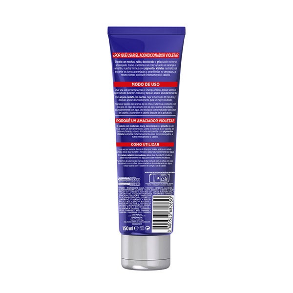 Neutraliza los reflejos amarillos o cobrizos indeseados con su fórmula enriquecida con pigmentos violetas, mientras aporta una nutrición profunda al cabello