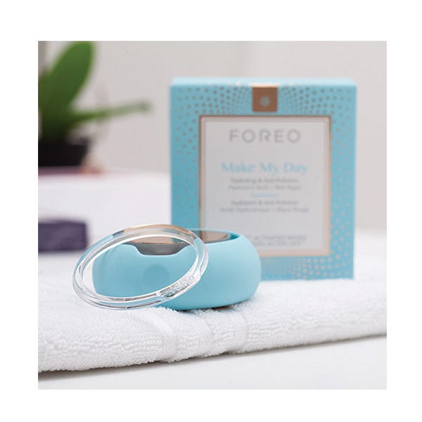 • Coloca la mascarilla Make My Day en tu dispositivo UFO™. Escanea el código de barras con la app FOREO For You para iniciar el tratamiento.