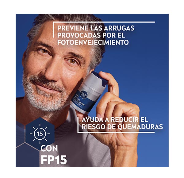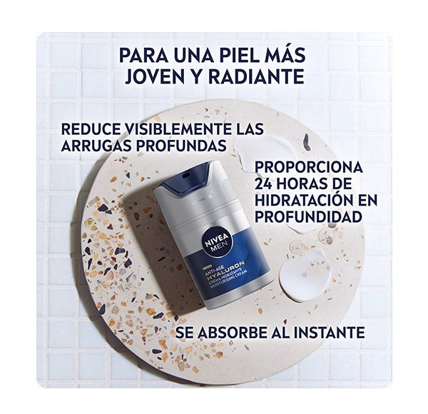 ¿Notas señales de envejecimiento? La NIVEA MEN Hyaluron Crema Hidratante Antiedad FP15 con Ácido Hialurónico es la aliada ideal para conservar una apariencia fresca y juvenil.