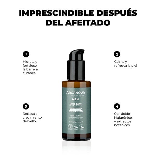 Por esa razón, el after shave de Arganour está elaborado con ingredientes naturales que hidratan, suavizan, nutren y aportan una agradable sensación refrescante, mientras ayudan a retardar el crecimiento del vello.