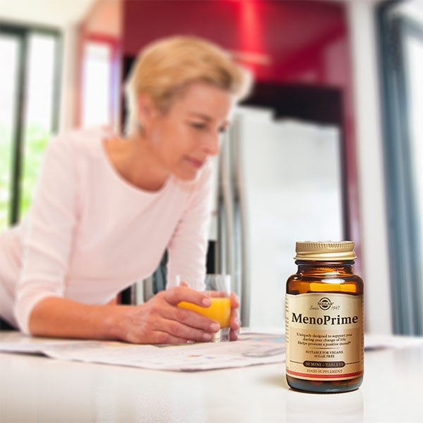 MenoPrime de Solgar® es una propuesta avanzada creada para acompañar a las mujeres maduras durante las etapas de menopausia y perimenopausia.