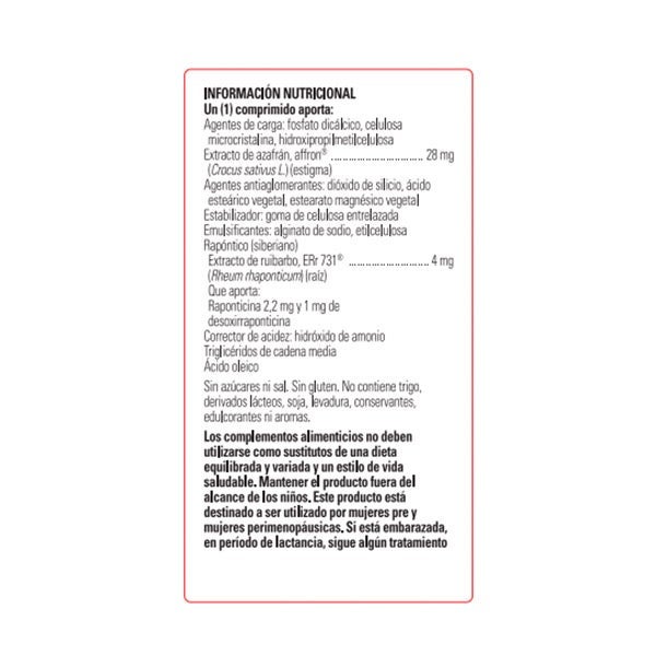 Su fórmula, libre de hormonas, reúne dos extractos vegetales patentados y respaldados por estudios clínicos: azafrán (affron®) y ruibarbo siberiano (ERr-731®), componentes que contribuyen al bienestar físico y emocional en este periodo de transición.