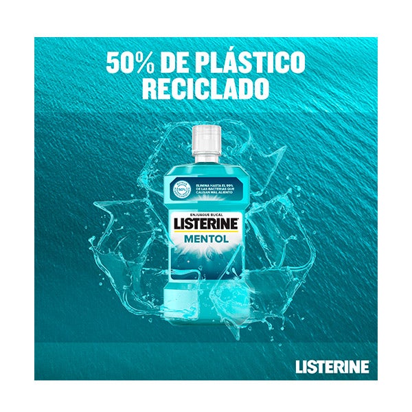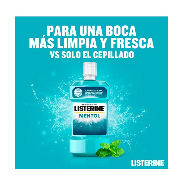 -Listerine Menthol ayuda a mantener una limpieza bucal más completa que el cepillado por sí solo, eliminando hasta el 99% de las bacterias causantes del mal aliento. Proporciona defensa diaria las 24 horas frente a la placa y aporta una frescura duradera.