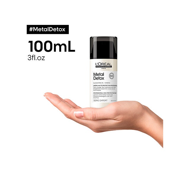 Experimenta la eficacia de la Crema sin aclarado Metal Detox de L'Oréal Professionnel, creada para cuidar el cabello sensibilizado, teñido o con mechas.