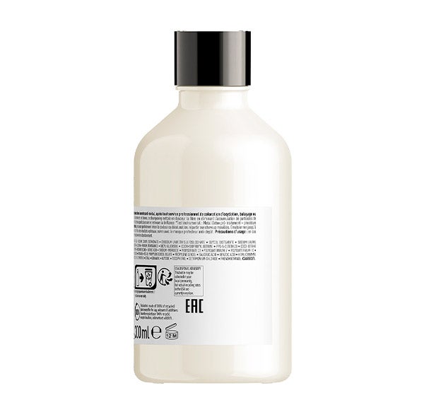 -Distribuir el champú L'ORÉAL PROFESSIONNEL Serie Expert Metal Detox de manera uniforme sobre el cabello húmedo.