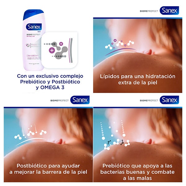 El gel de ducha y baño limpiador Sanex Dermo Micellar Equilibrante combina omega 3 y agentes emolientes para ofrecer una sensación de alivio y bienestar apta para cualquier tipo de piel.