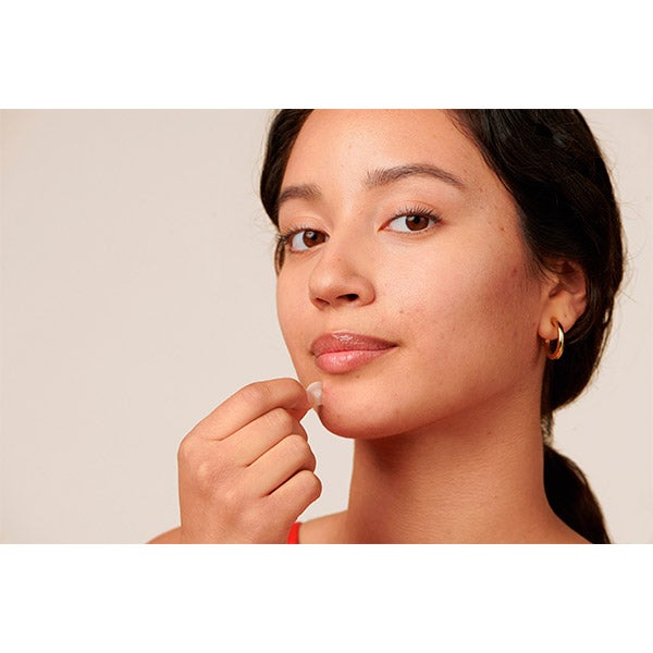 2. Coloca el parche directamente sobre el grano y déjalo actuar entre 6 y 8 horas. (Para un resultado óptimo, asegúrate de que se trate de un grano blanco o con pus y evita usar cremas o sérums debajo del parche).