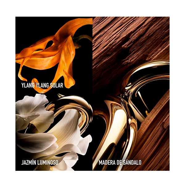 En un instante, atrévete y experimenta la fantasía dorada. Conviértete en la soberana de la noche. El alma brillante y apasionada de la celebración, conquistando la pista dorada. Million Gold for Her Parfum libera una nueva fuerza incandescente. Una adicción envolvente y cálida de sándalo ilumina el sueño dorado sobre un bouquet floral intensamente femenino de absoluto de jazmín radiante y ylang ylang bañado de sol. Más seductora que nunca, Million Gold for Her Parfum representa la versión amaderada y moderna del gran floral de Rabanne.